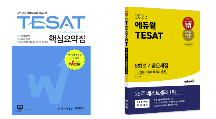 [TESAT 핵심요약집:국가공인 경제이해력 검증시험]과 [2023 TESAT 8회분 기출문제집] 두 가지 교재로 진행했다.