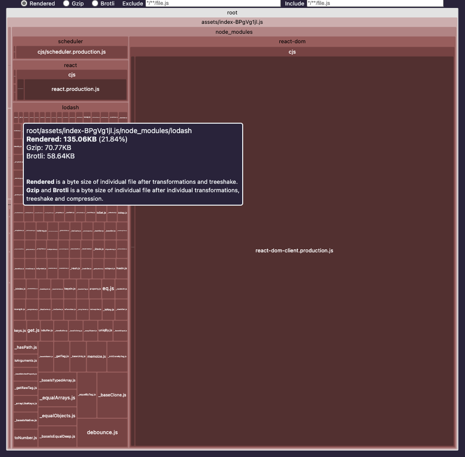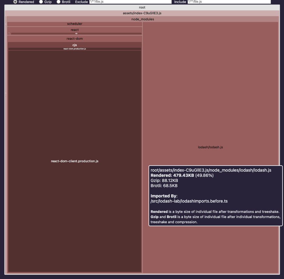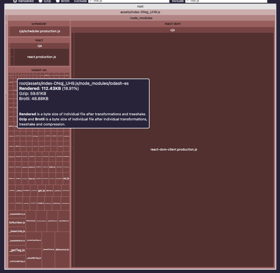 - rollup-plugin-visualizer: 번들 트리맵 + gzip/brotli 사이즈 확인